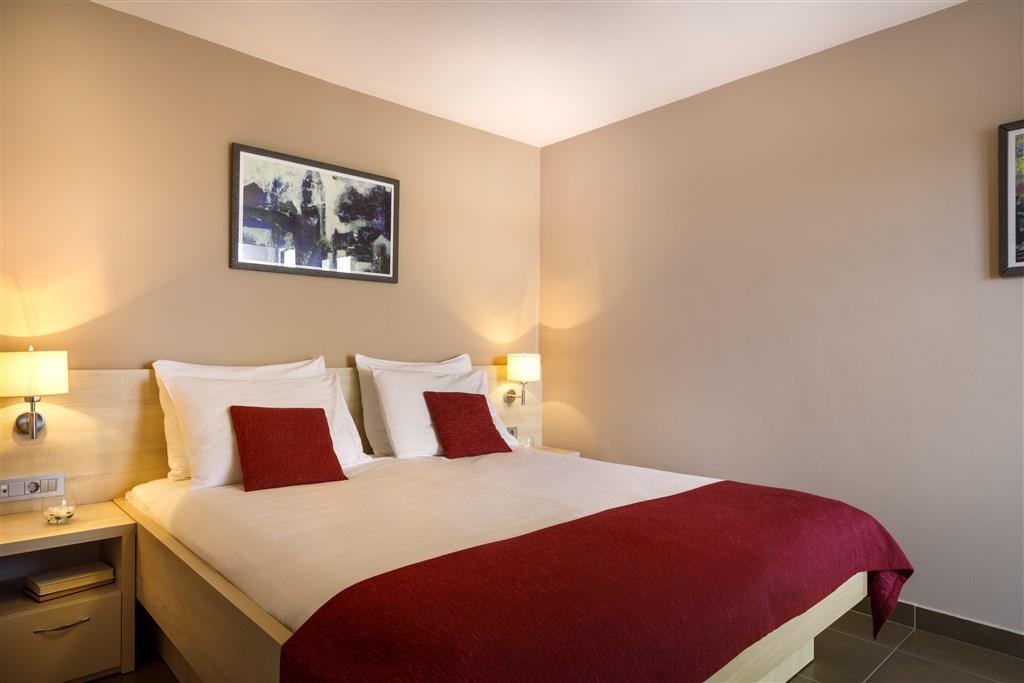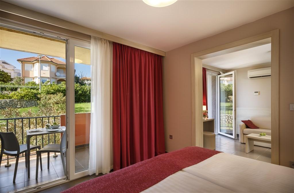 dvoulůžkové pokoje • možnost přistýlky • sprcha/WC • telefon • SAT TV • klimatizace • balkon • WiFi • rodinné pokoje JUNIOR SUITE/2+2(+1) - dvoulůžková ložnice a obývací místnost se dvěma lůžky (rozkládací gauč), možnost přistýlky v ložnici nebo v obývací místnosti (za příplatek), sprcha/WC, fén, telefon, SAT TV, klimatizace, balkon, WiFi |