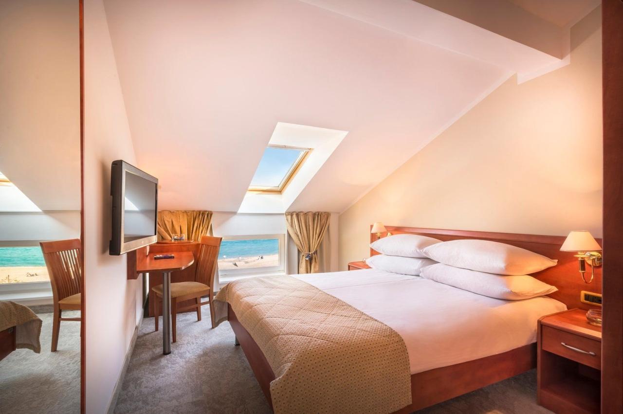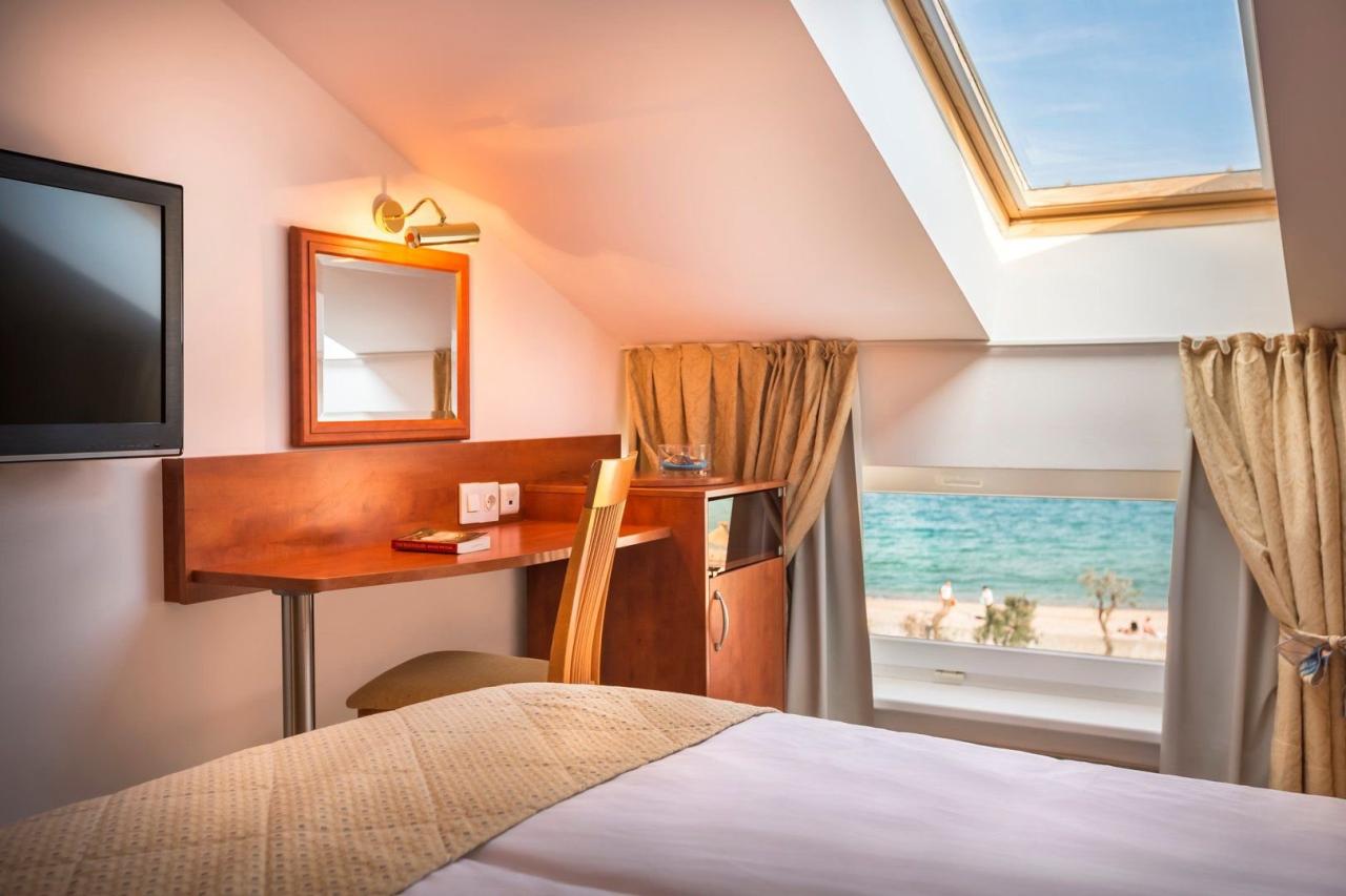 minibar. Nejlevnější pokoje se nacházejí v mansardě bez balkonu, za příplatek pokoje s lodžií na mořskou stranu nebo pokoje bez výhledu na moře v přízemí nebo 1. patře. Na vyžádání a za příplatek suity. |
